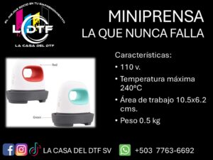 En resumen, la mini plancha térmica para sublimación de alta precisión combina practicidad, eficiencia y control, convirtiéndose en una herramienta indispensable para quienes buscan calidad profesional en detalles y acabados personalizados.
