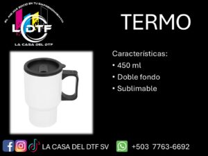 El Termo Vaso de 450 ml es sublimable es un producto versátil y funcional diseñado para la personalización mediante sublimación, ideal para crear artículos únicos con acabados profesionales, duraderos y de alta calidad. Gracias a su recubrimiento especial, permite una transferencia óptima de la tinta, logrando diseños nítidos, colores vibrantes y excelente adherencia en toda su superficie.